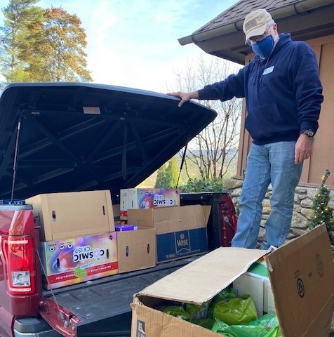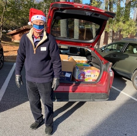 WNC-MOAA conducted an inaugural "Christmas Drive-Thru" to support Veterans at the Charles George VA Medical Facility. A call for donations went out to the membership and the event was ably supported by the Hendersonville Country Club...and they made donations too! Between 300-400 pounds of much-needed supplies and $1000 in cash were delivered to the medical center. Members Rod Nunnelee, Jeff Snyder, Donna & John Culp, Mike Pomponio, Mike Covell and Vivianne Wersel served as "Santa's Helpers" for the event.